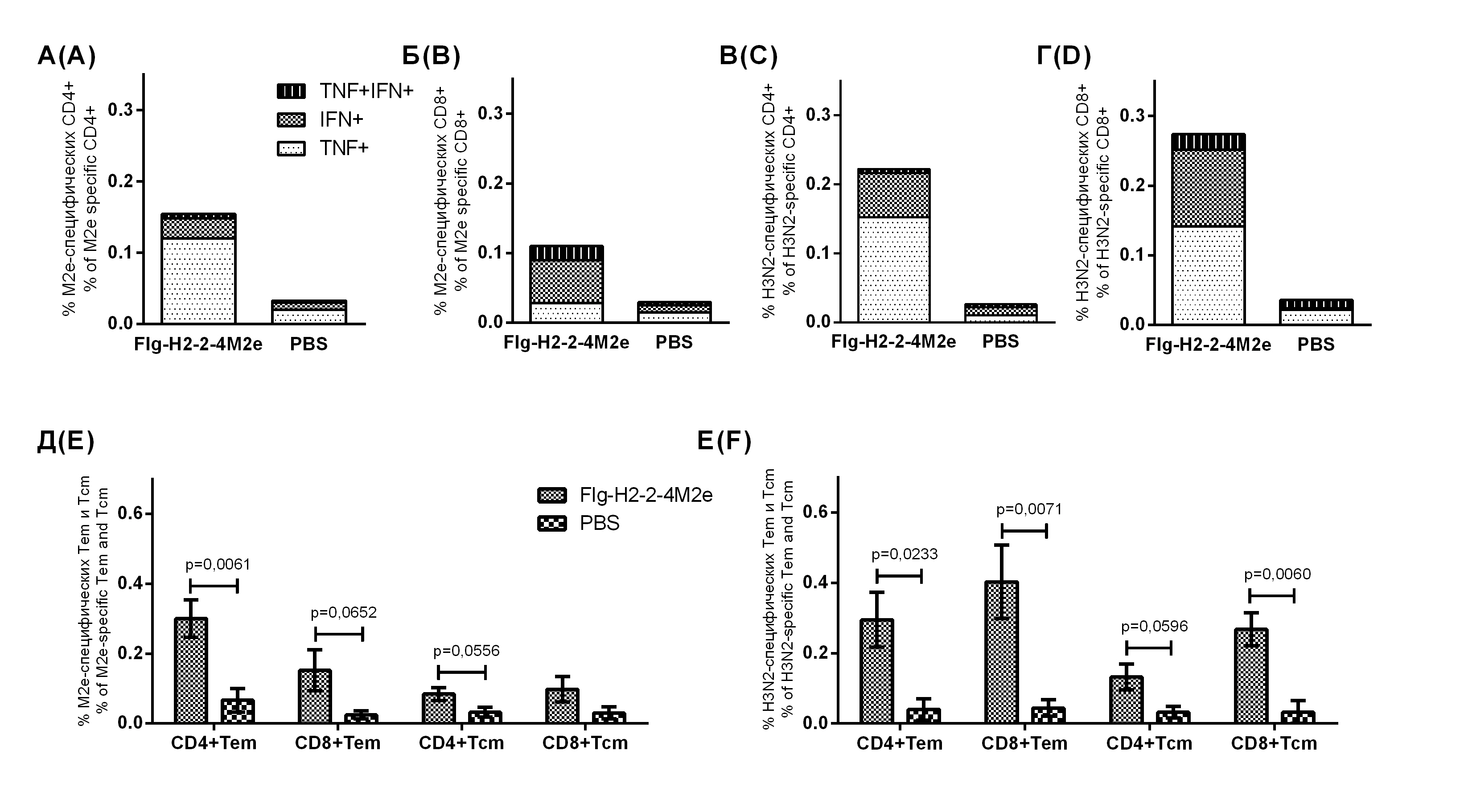 Интраназальная иммунизация рекомбинантным белком на основе М2е-пептида и фрагмента второй субъединицы гемагглютинина вирусов гриппа А индуцирует кросс-протективный гуморальный и Т-клеточный ответ у мышей