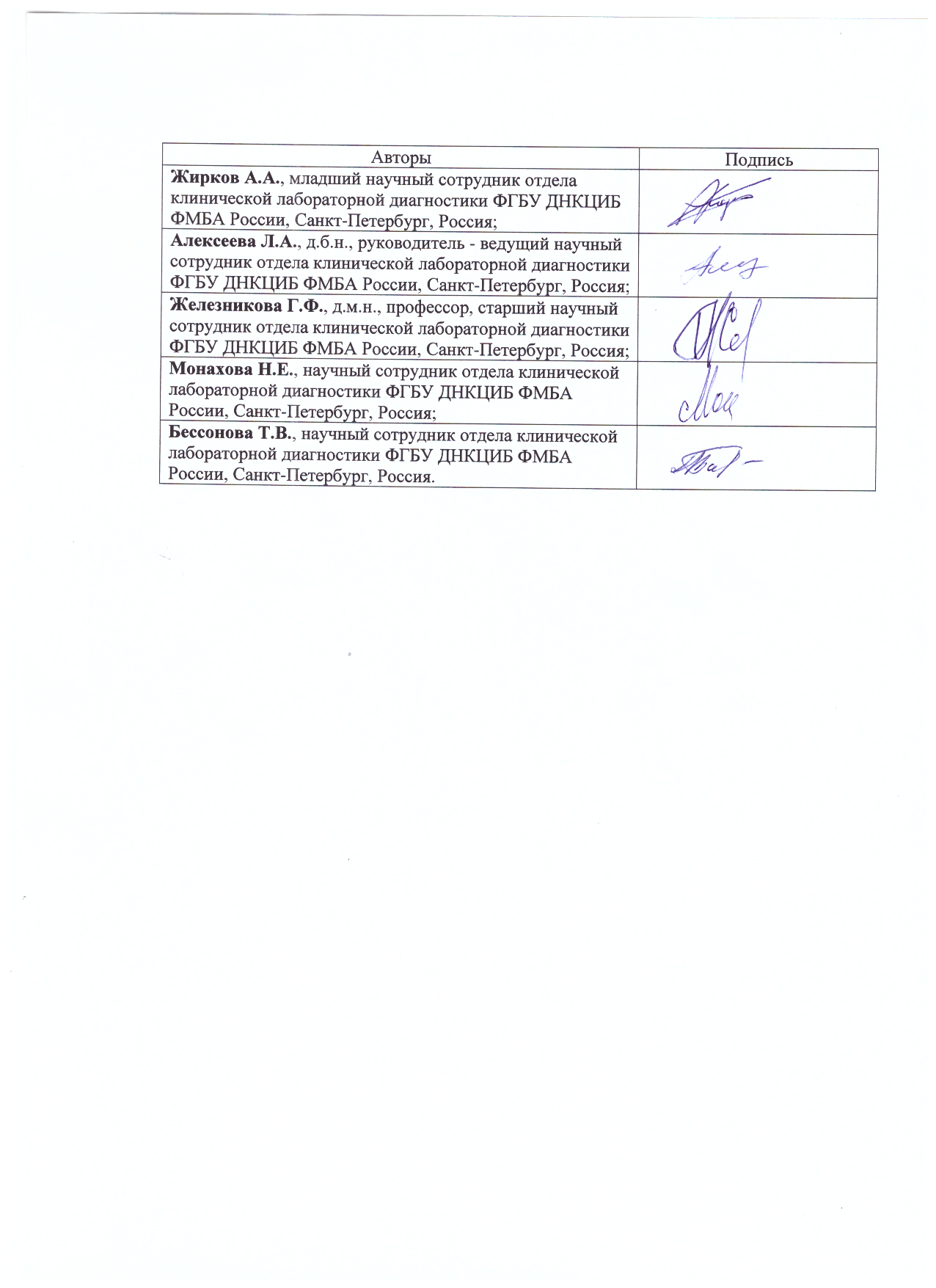 Алексеева Лидия Аркадьевна – доктор биологических наук, руководитель, ведущий научный сотрудник отдела клинической лабораторной диагностики.