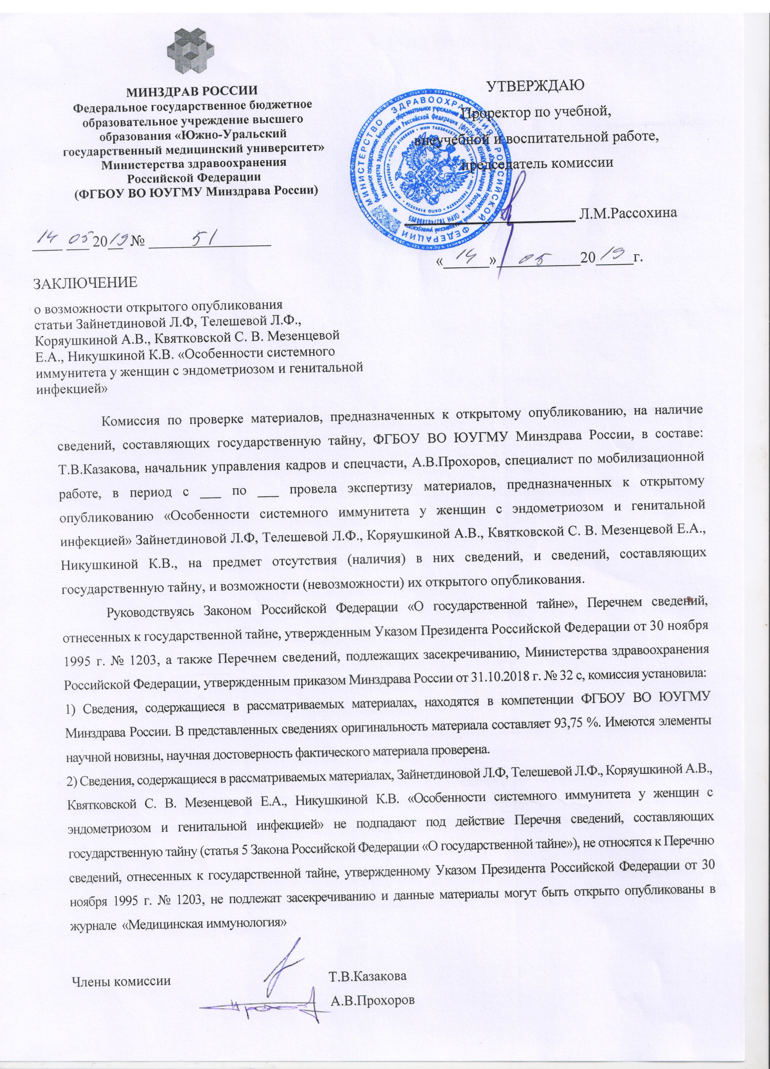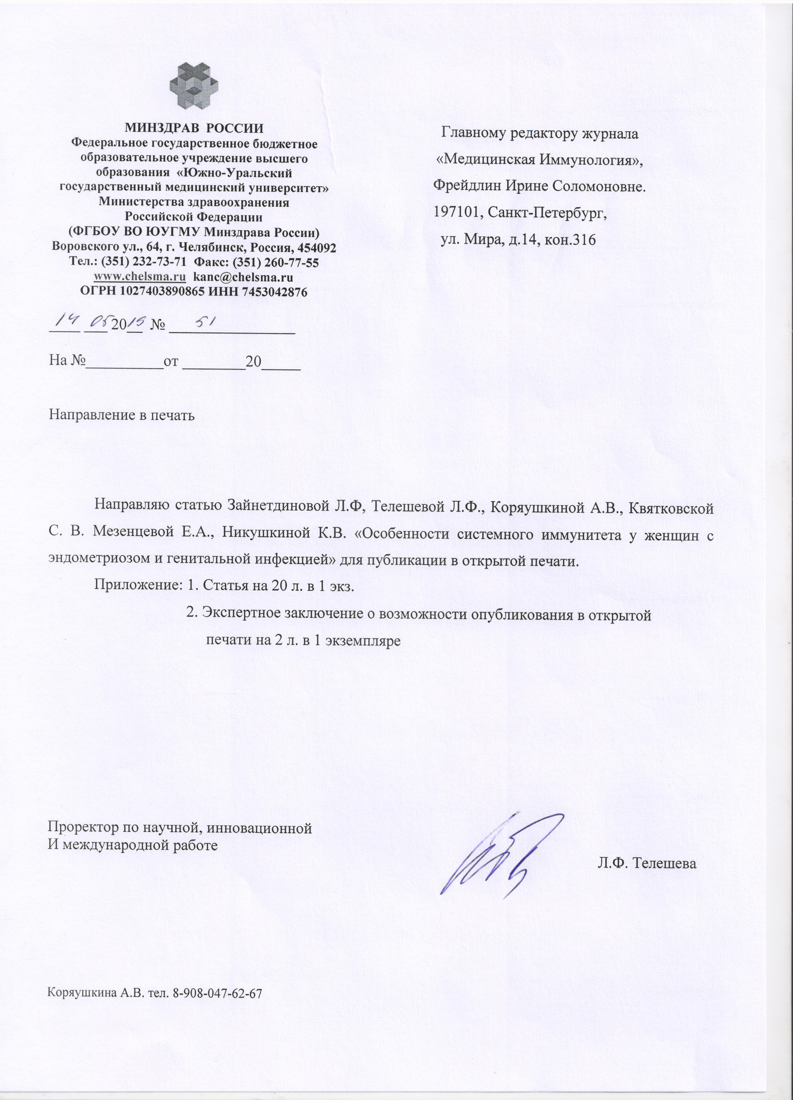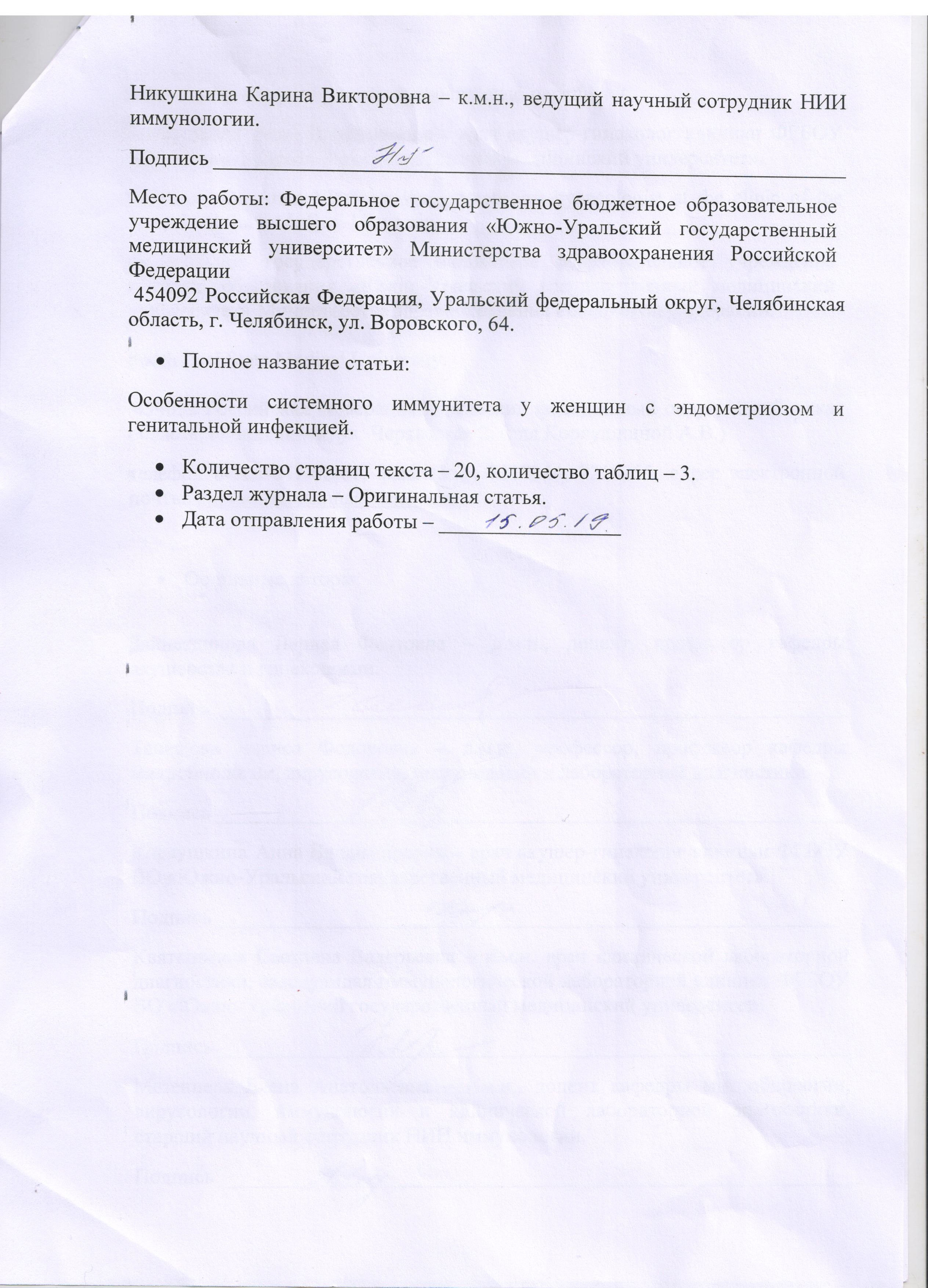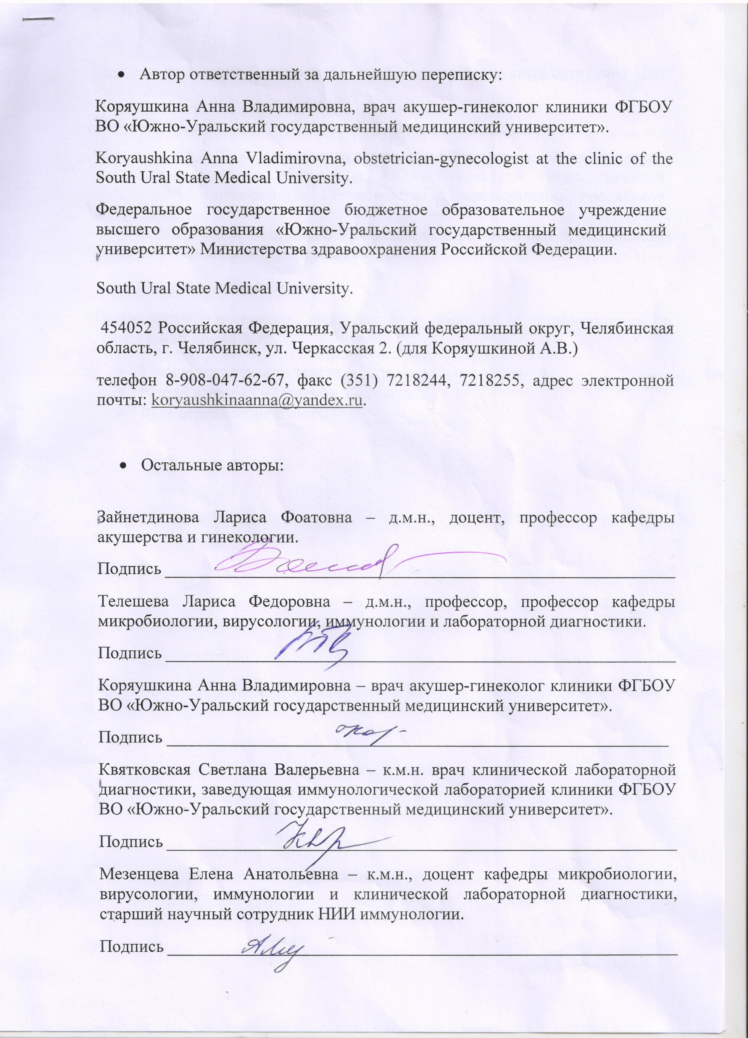 ФГБОУ ВО «Южно-Уральский государственный медицинский университет» Министерства здравоохранения РФ