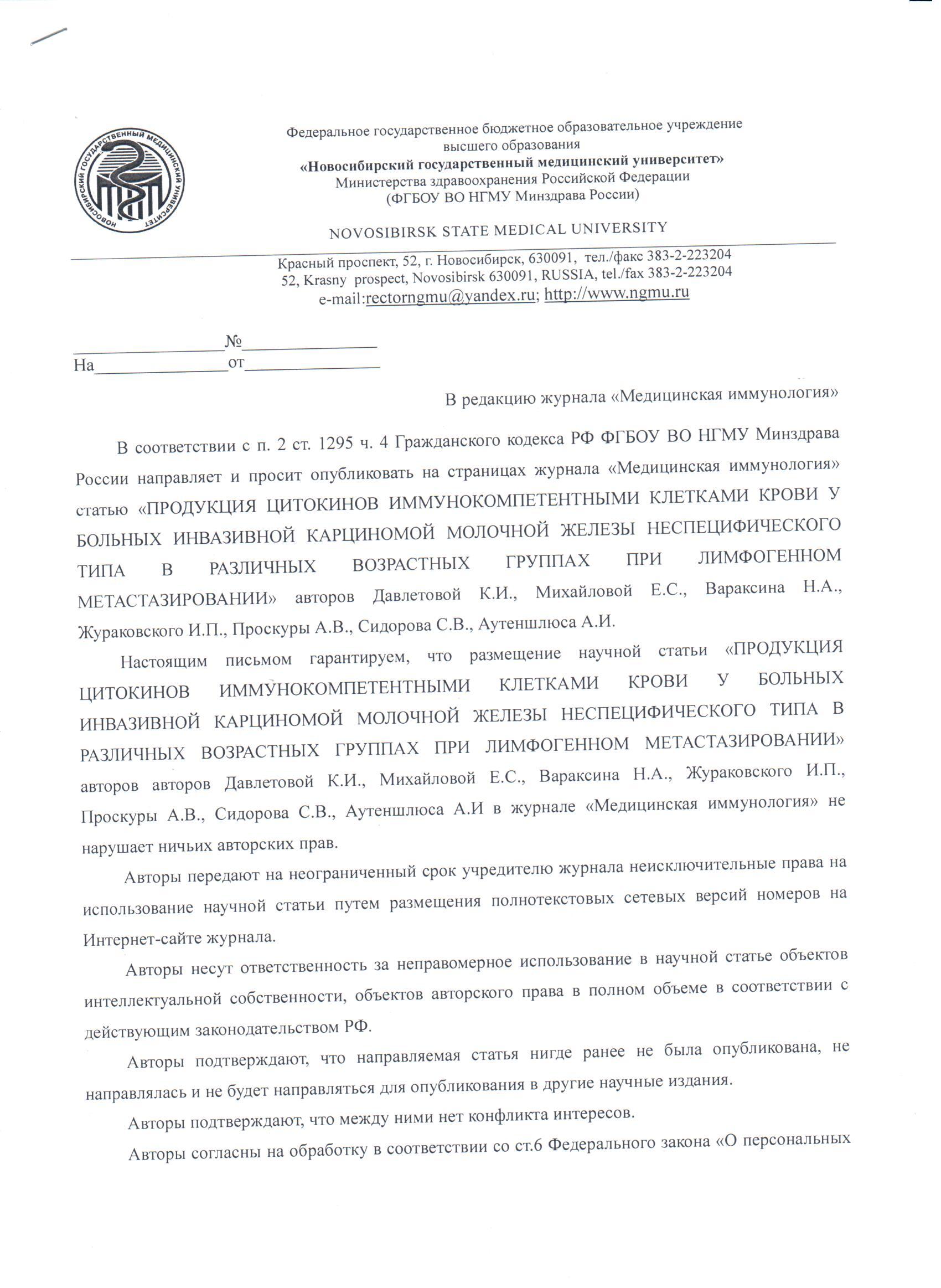 ФГБОУВО «Новосибирский государственный медицинский университет» Министерства здравоохранения РФ