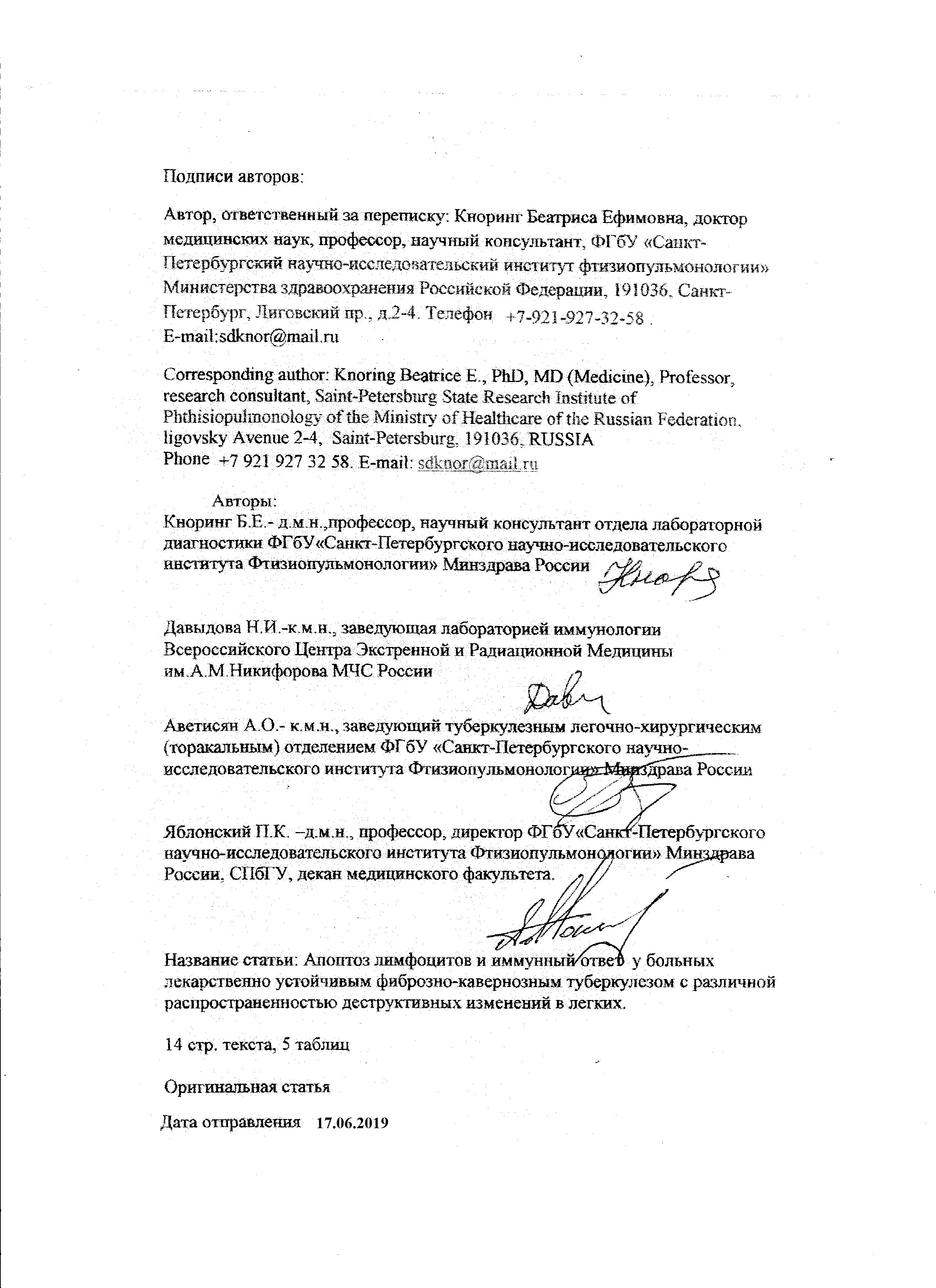Кноринг Б.Е., Давыдова Н.И., Аветисян А.О., Яблонский П.К. Апоптоз лимфоцитов и иммунный ответ у больных лекарственно-устойчивым фиброзно-кавернозным туберкулезом с различной распространенностью деструктивных изменений в легких. Медицинская иммунология. 2019;21(6):1099-1114. https://doi.org/10.15789/1563-0625-2019-6-1099-1114