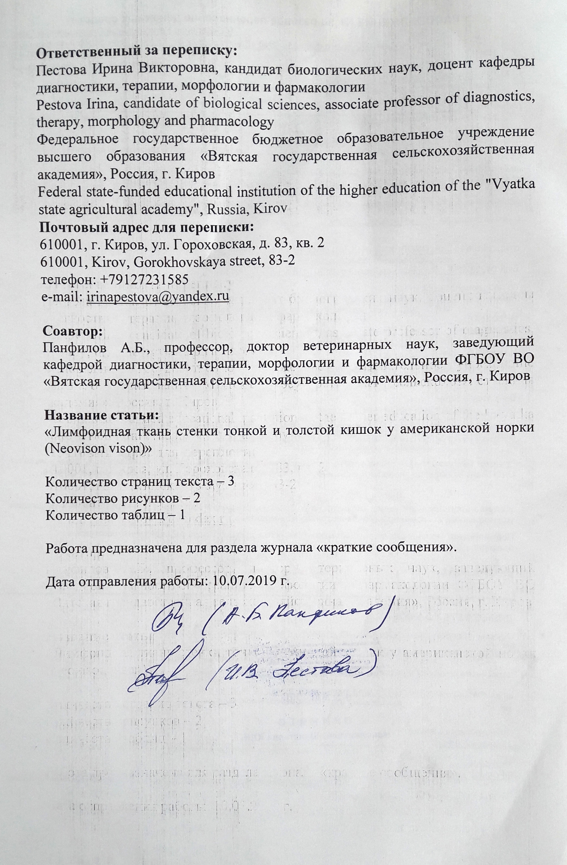 Пестова И.В. – к.б.н., доцент кафедры диагностики, терапии, морфологии и фармакологии