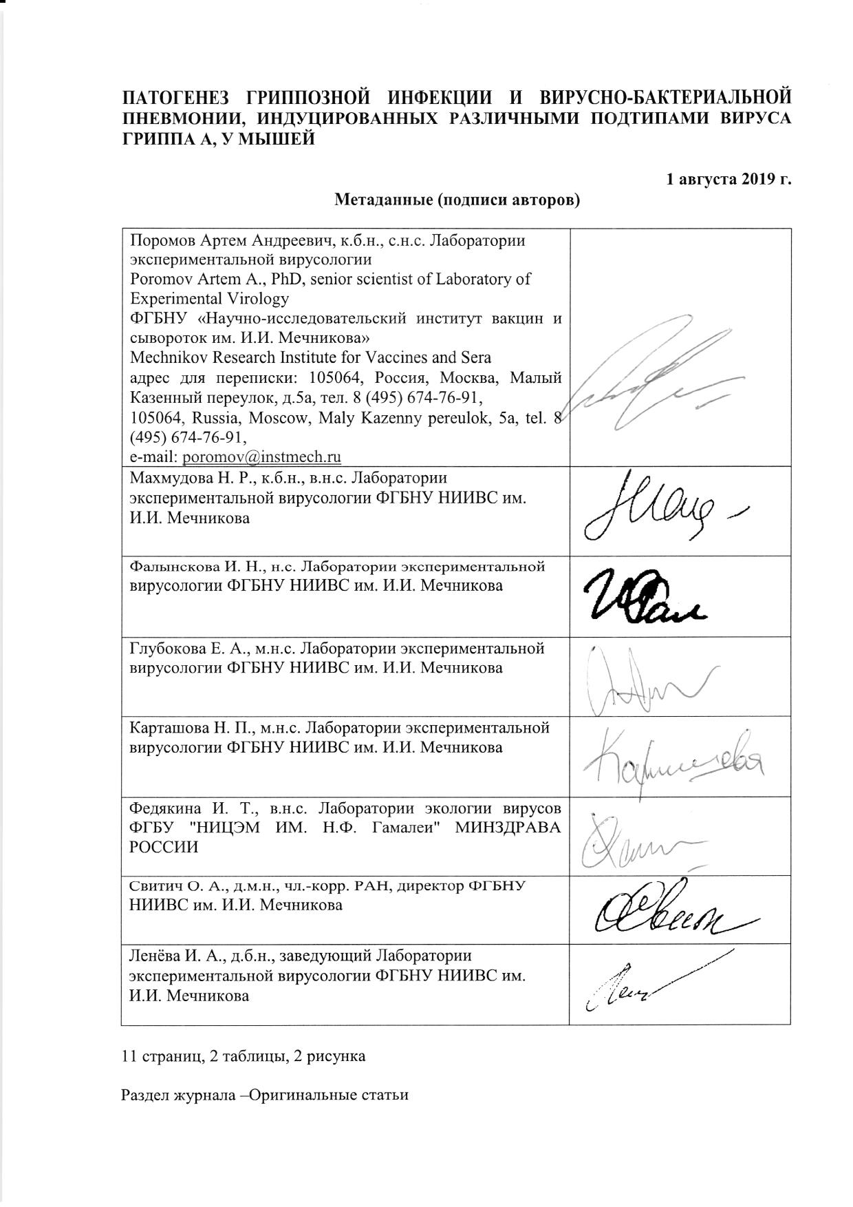 1. Ленева И.А., Леонова Е.И., Махмудова Н.Р., Фалынскова, И.Н. Федякина И.Т., Зверев В.В. Разработка экспериментальной модели сочетанной вирусно-бактериальной пневмонии // Вопросы вирусологии, 2015. T. 60, № 5. С. 27-31. [Leneva I.А., Leonova E.I., Маkhmudоvа N.R., Falynskova I.N., Fedyakina I.Т., Zverev V.V., Mikhailova N.A. Experimental model of secondary bacterial pneumonia after influenza. Voprosy virusologii = Problems of Virology, 2015, Vol. 60, no. 5, pp. 27-31. (In Russ.)]
