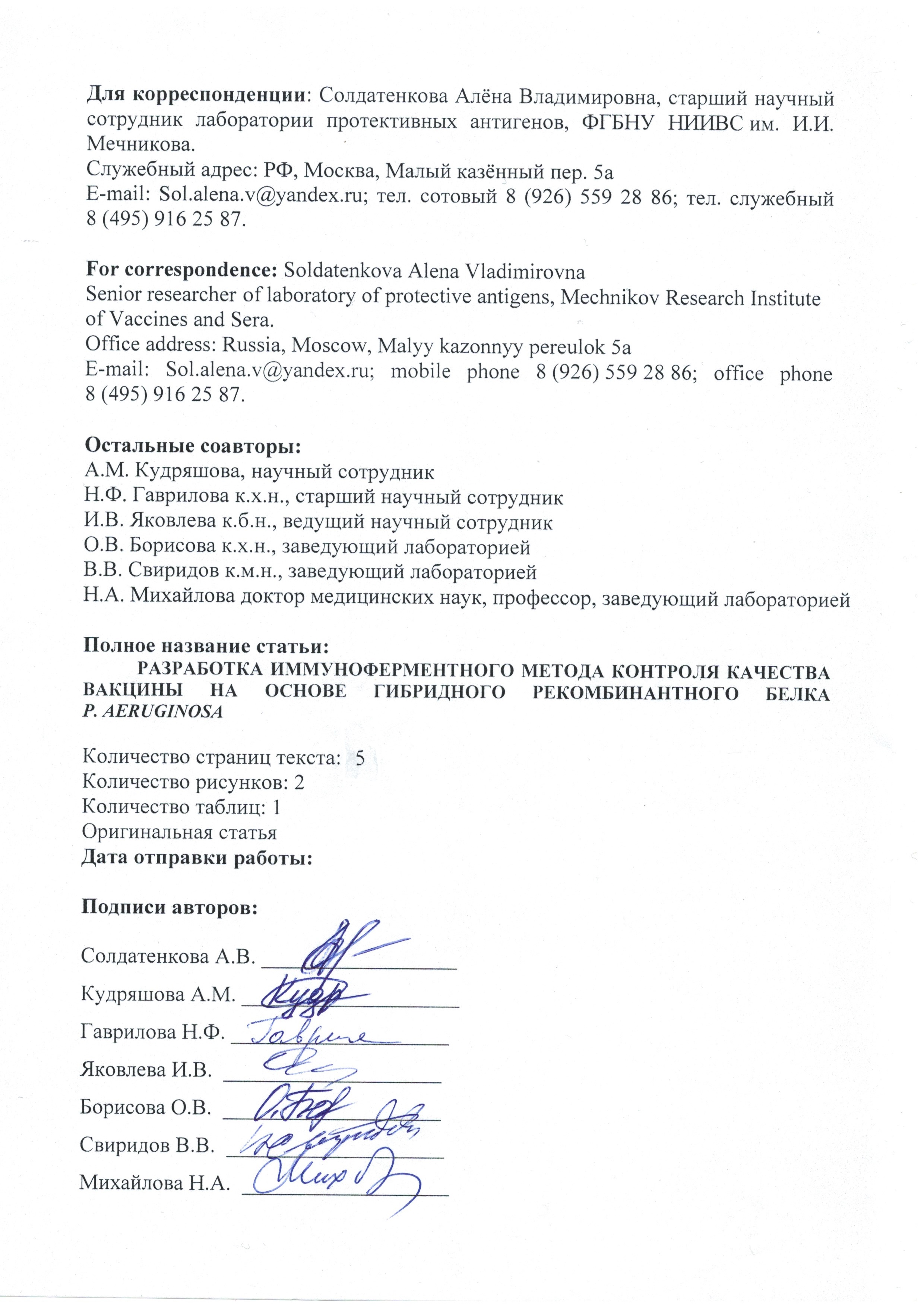 6. Солдатенкова А.В., Зимина Е.М., Кудряшова А.М., Гаврилова Н.Ф., Яковлева И.В., Борисова О.В., Свиридов В.В., Михайлова Н.А. Разработка иммуноферментных методов оценки контроля качества рекомбинантной вакцины синегнойной // Журнал микробиологии, эпидемиологии и иммунобиологии, 2019. № 1. С. 95-100.