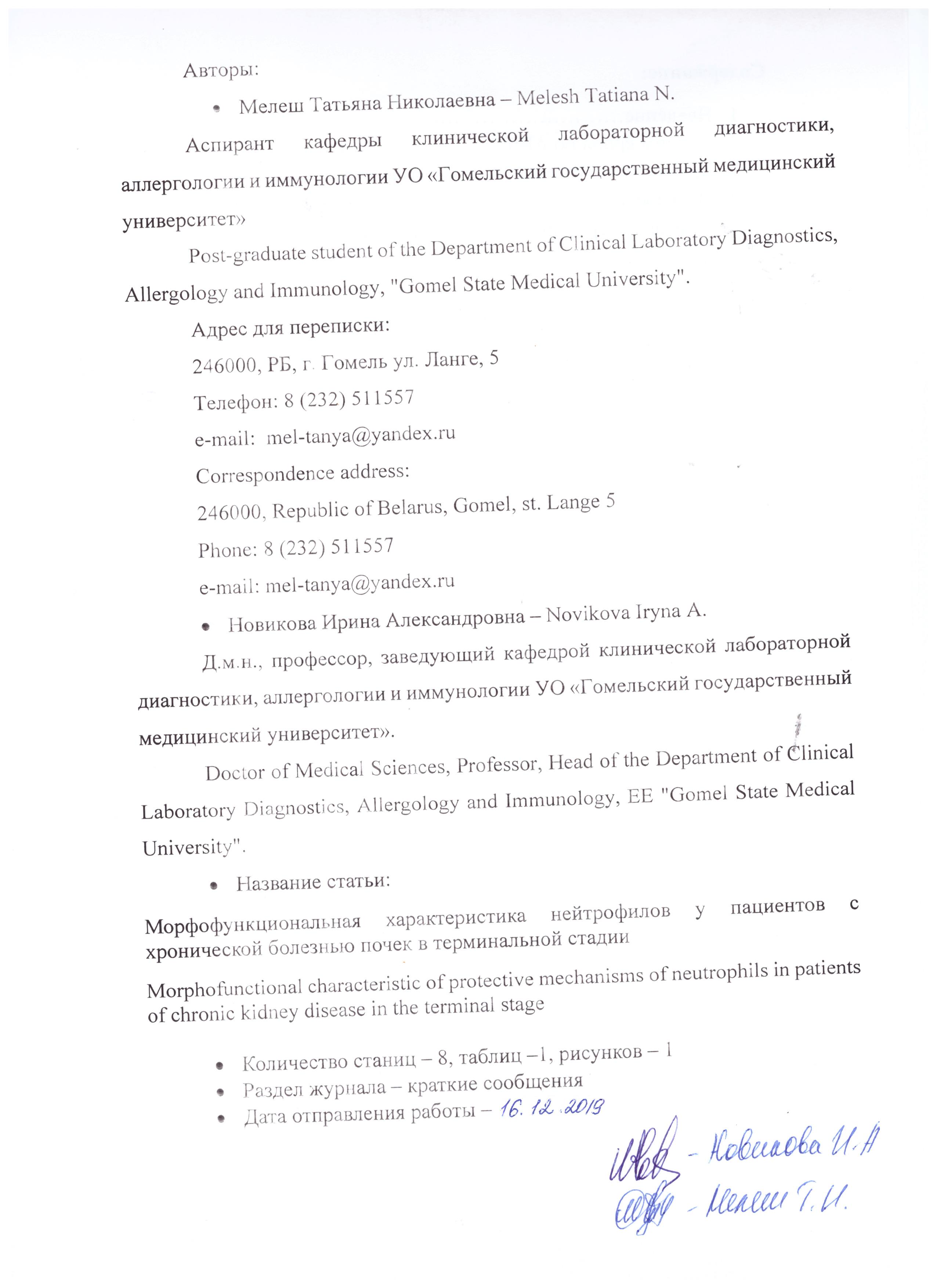 Melesh T.N., Novikova I.A. Morpho-functional characterisation of protective mechanisms of neutrophils in the patients at the terminal stage of chronic kidney disease. Medical Immunology (Russia). 2020;22(3):539-544. (In Russ.) https://doi.org/10.15789/1563-0625-MCO-1915