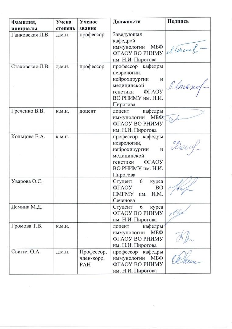 Громова Татьяна Вячеславовна – кандидат медицинских наук, доцент кафедры иммунологии медико-биологического факультета.