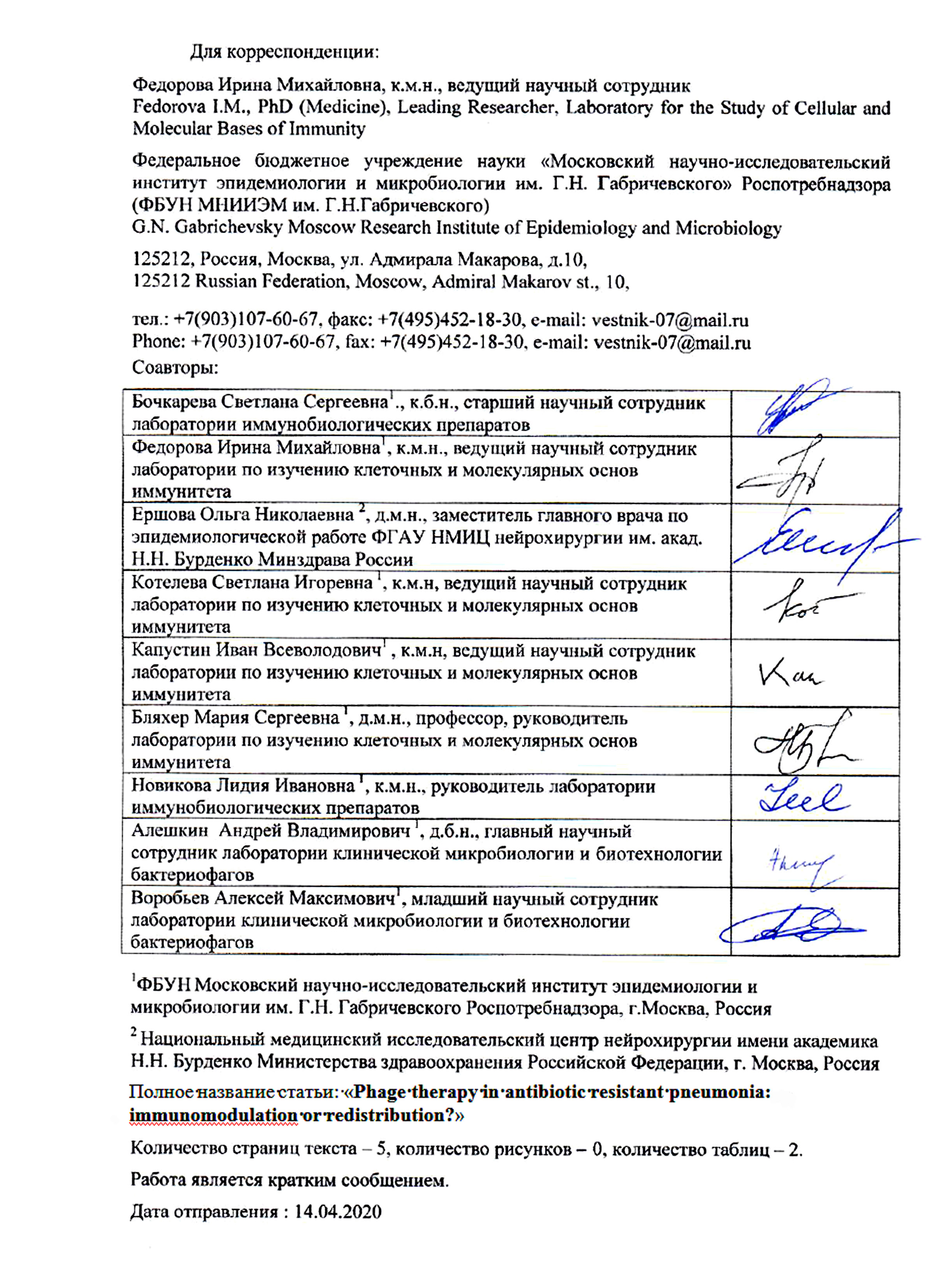Bochkareva S.S., Fedorova I.M., Ershova O.N., Koteleva S.I., Kapustin I.V., Blyakher M.S., Novikova L.I., Aleshkin A.V., Vorobev А.М. Phage therapy in antibiotic resistant pneumonia: immunomodulation or redistribution? Medical Immunology (Russia). 2021;23(1):179-184. https://doi.org/10.15789/1563-0625-PTI-2012