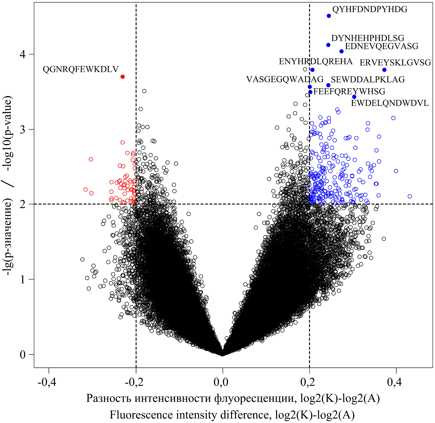 Большой и разнообразный репертуар антител кодирует историю прошлого иммунологического опыта, создавая глобальную сеть системы регуляции организма. В этой статье мы предлагаем использовать пептидный микрочип (метод «иммуносигнатуры») для оценки глобальных индивидуальных паттернов антител и биоинформационный анализ данных для дифференциальной диагностики расстройств аутистического спектра. Пептидный микрочип состоит из 124000 случайным образом синтезированных антигенных миметиков, ковалентно связанных с поверхностью стеклянного слайда. Капля плазмы тестируется на наличие антител определенной реактивности, путем измерения связывания их с каждым антигенным миметиком микрочипа с помощью флуоресцентного окрашивания вторичными IgG-антителами, и такая реакция учитывается при лазерной активации. Файлы оцифрованных данных интенсивности флуоресценции, которая презентовала реактивность антител плазмы, связавшихся с антигенными миметиками, использовали для биоинформационного анализа. Обработка данных была проведена пакетами проекта Bioconductor для программно-статистической среды R. На этапе предобработки полученных данных, для выравнивания распределений показателей реактивности антител, применяли квантильную нормализацию. Данные по образцам и другую необходимую информацию объединяли в один файл-контейнер класса ExpessionSet. Для сравнения контрольной и опытной групп использовали однофакторный дисперсионный анализ в модификации Уэлча (для неравных дисперсий). Полученные оценки разности средних значений и статистической значимости P использовали далее для построения вулканной диаграммы, для ранжирования и отбора наиболее перспективных показателей реактивности антител. Для дифференциальной диагностики аутизма и оценки диагностической значимости метода иммуносигнатуры была построена тепловая карта. При построении тепловой карты использовали стандартизованные значения логарифмов реактивности антител и результаты иерархического кластерного анализа, проведённого методом Уорда, с использованием в качестве меры сходства корреляции Пирсона. В результате биоинформационного анализа данных было выбрано 73 антитела, реактивность которых имела статистически значимые различия в группах детей с аутизмом и типично развивающихся детей. Эти антитела были использованы для дифференциальной диагностики, ценность которой определяли при построении тепловой карты. Обнаружено, что группа детей с расстройствами аутистического спектра по показателям реактивности антител обладает выраженной гетерогенностью, и состоит как минимум из двух подгрупп. Кроме того, 60 антител у детей с аутизмом демонстрировали преимущественно среднюю и низкую реактивность, т.е. эти антитела имели слабую силу связывания с антигенными миметиками, и только 13 антител показывали высокую реактивность. В целом, специфичность диагностики расстройств аутистического спектра с помощью метода иммуносигнатуры составила 96,0% (95% ДИ от 82,8 до 99,6%), чувствительность – 78,3% (95% ДИ от 64,9 до 88,2%) и диагностическая эффективность – 82,7%. Наше пилотное исследование позволяет предложить метод иммуносигнатуры для дифференциальной диагностики аутизма и, возможно, расширить наше понимание нарушений при расстройствах аутистического спектра.