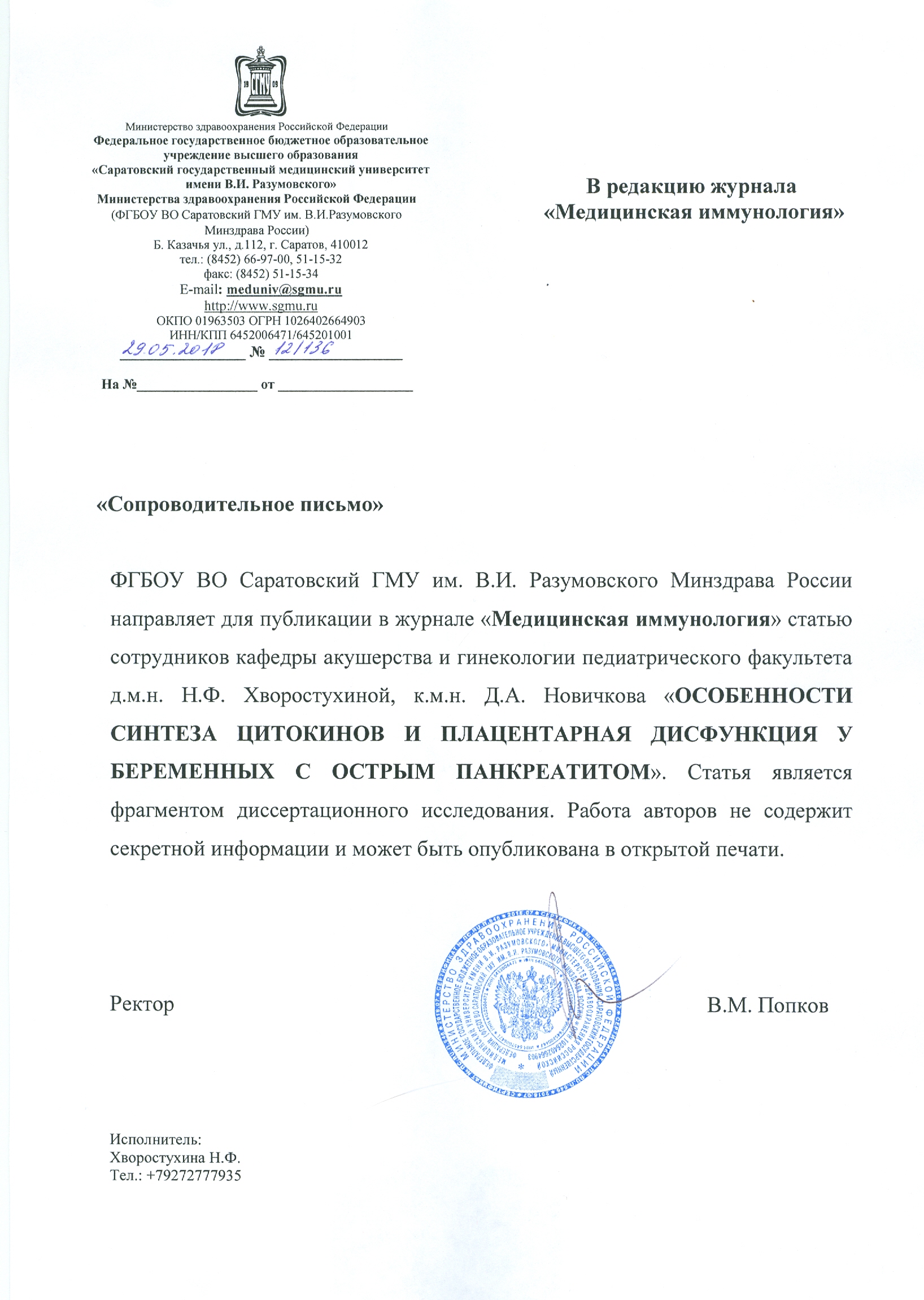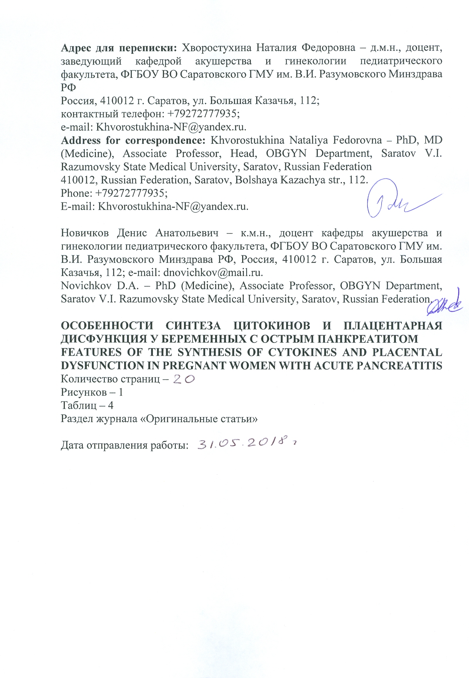 Khvorostukhina N.F., Novichkov D.A. FEATURES OF THE SYNTHESIS OF CYTOKINES AND PLACENTAL DYSFUNCTION IN PREGNANT WOMEN WITH ACUTE PANCREATITIS. Medical Immunology (Russia). 2019;21(2):239-250. (In Russ.) https://doi.org/10.15789/1563-0625-2019-2-239-250