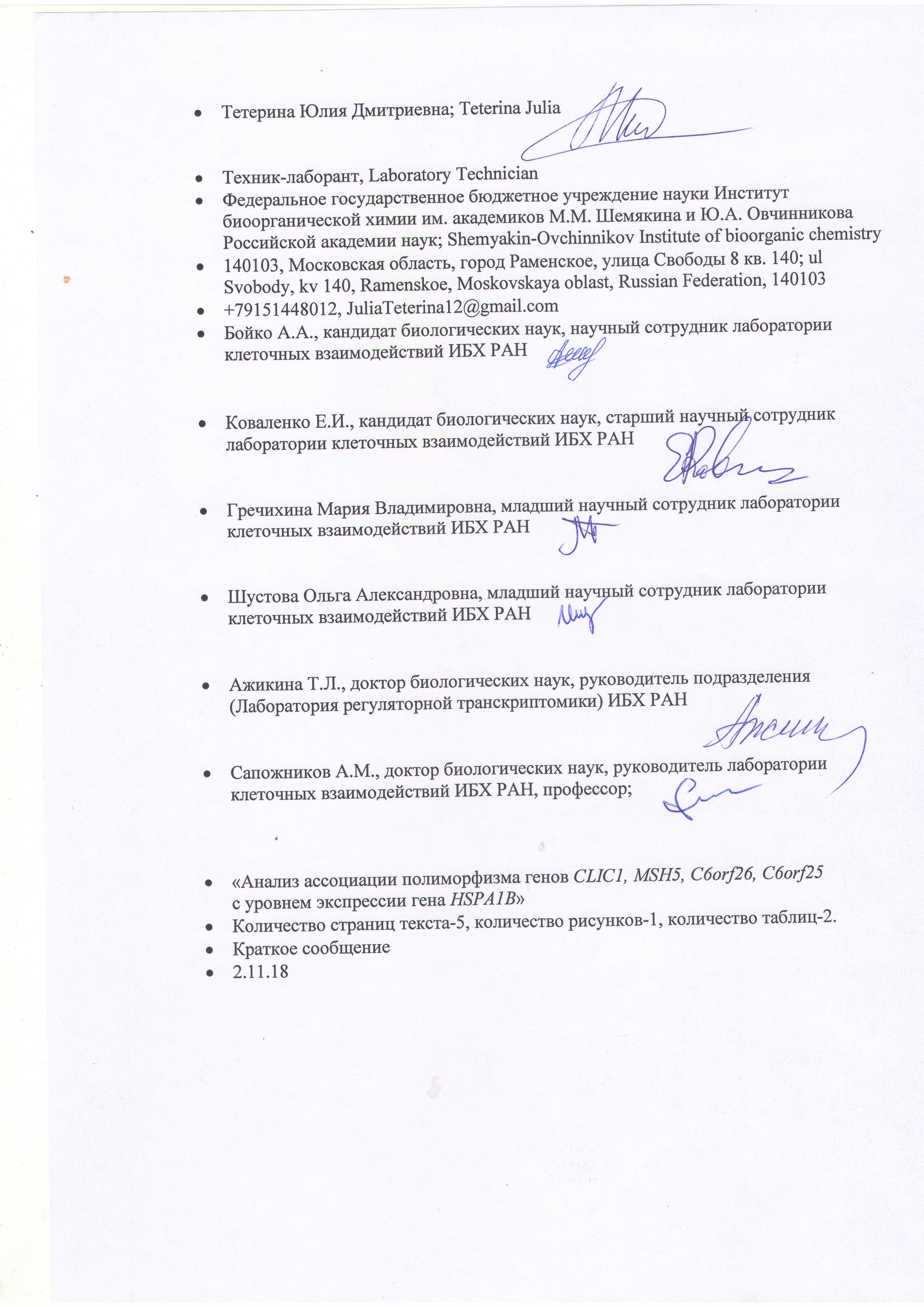 Шустова Ольга Александровна – младший научный сотрудник лаборатории клеточных взаимодействий.
