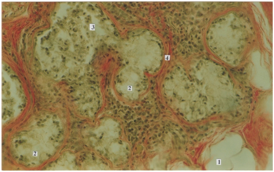 Статья имеет целью изучение железисто-лимфоидных взаимоотношений пищеварительного тракта в постнатальном онтогенезе и представляет особый интерес для клинической иммунологии. Макроскопическим и гистологическим методом нами исследованы слюнные железы, полученные от трупов 299 человек (язычные железы), начиная от новорожденных и до периода долгожительства, исследованы трупы представителей мужского и женского пола. Материал забирали в судебно-медицинских моргах Бюро СМЭ Департамента здравоохранения г. Москвы, что разрешено Постановлением Правительства РФ, Федеральный закон № 323, ст. 47, 4180-1, 355н. В фактический материал для исследования не включали случаи, когда при судебно-медицинском исследовании трупа выявляли патологические изменения пищеварительной системы. Микропрепараты (поперечные срезы) были окрашены гематоксилином-эозином и пикрофуксином по ван Гизону.